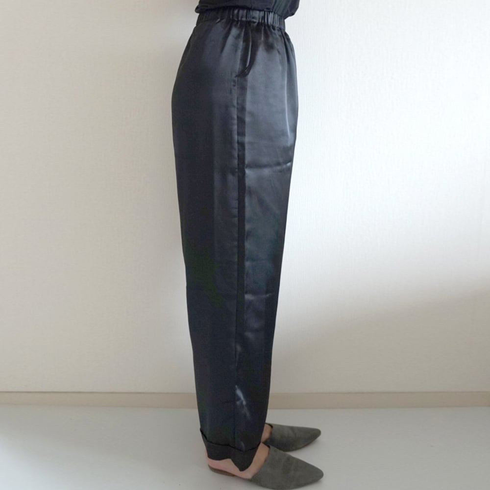 【受注製作】イージーパンツ beside (サテン) - BLACK